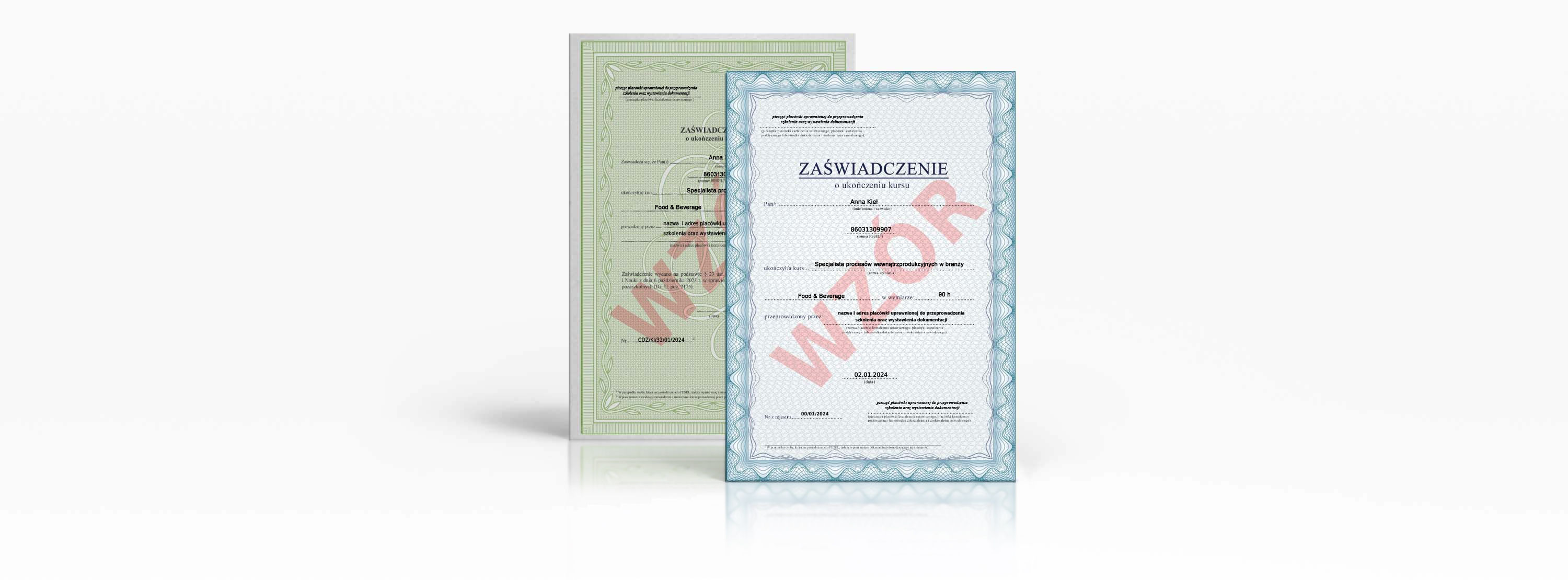 Dodatkowo absolwenci Kursu Specjalista procesów wewnątrzprodukcyjnych w branży Food & Beverage w Centrum Doskonalenia Zawodowego mają możliwość uzyskania – dzięki pozytywnej opinii uczelni wyższej – dodatkowej dokumentacji w formie rekomendacji oraz zaświadczenia o ukończeniu kursu, które stanowią cenne potwierdzenie zdobytych kompetencji.