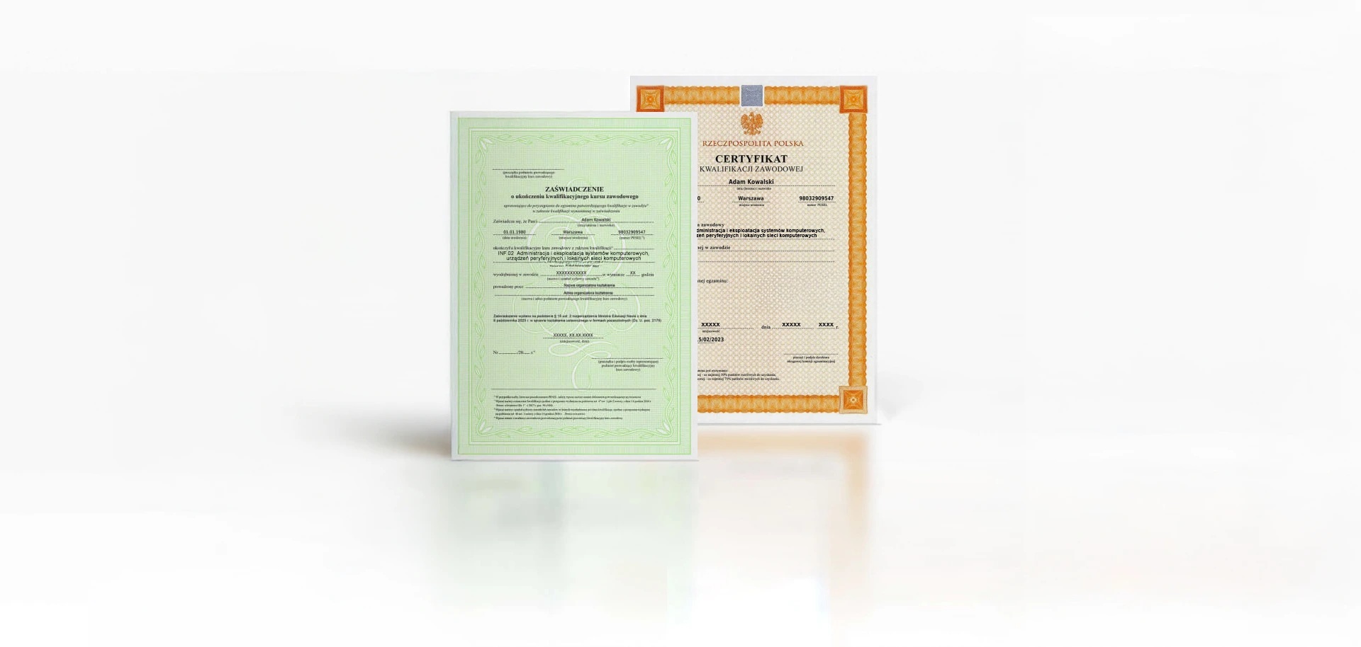 Po zdanym egzaminie zawodowym dodatkowo uzyskuje się Certyfikat potwierdzający kwalifikacje w zawodzie.